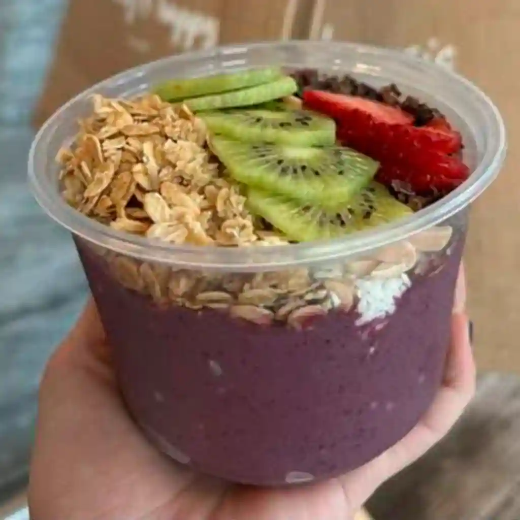 Acai, banana, green apple, almond butter, blueberry & coconut milk.